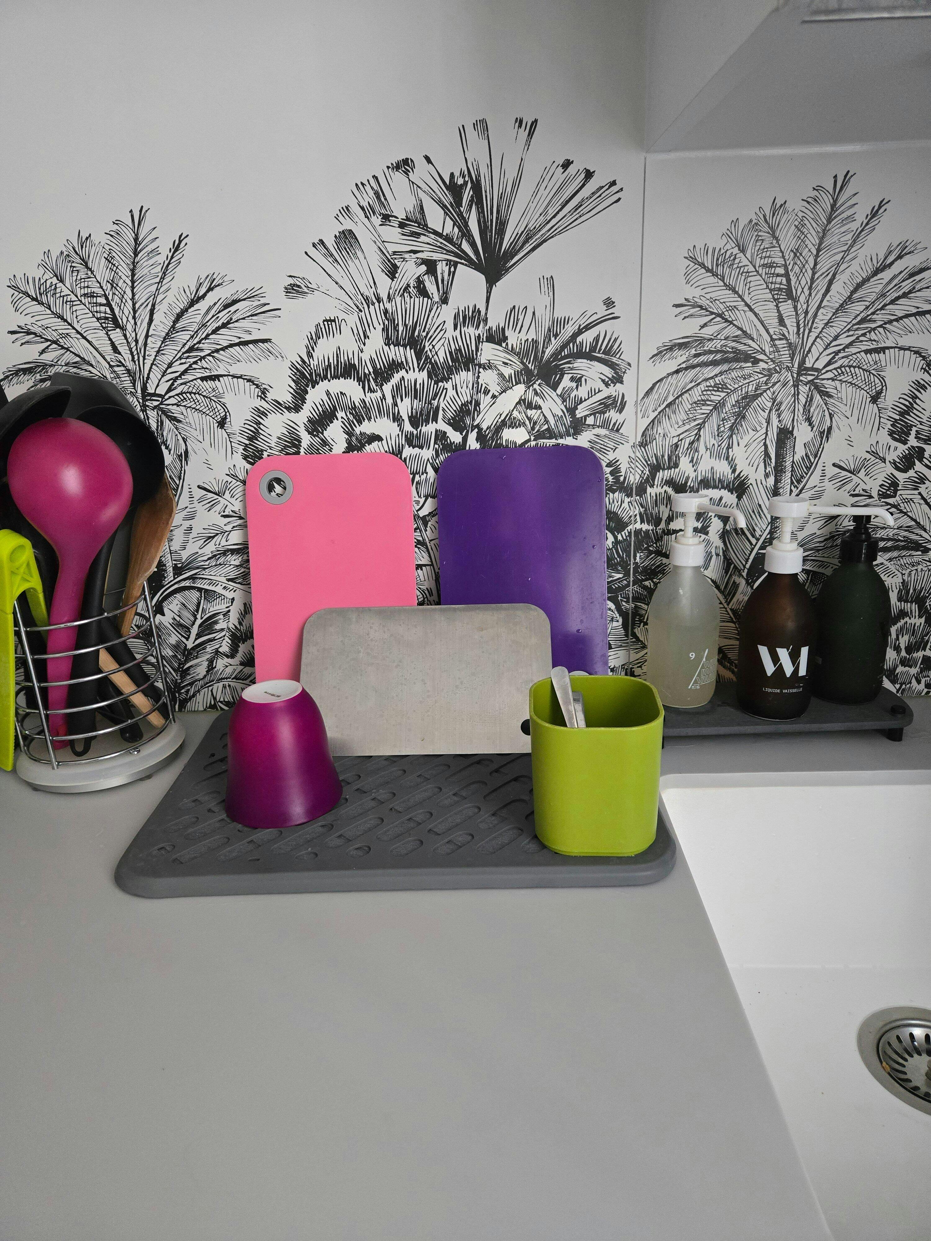 Fini les torchons humides ! Notre égouttoir aux propriétés d'absorption et de séchage uniques va révolutionner la façon dont vous séchez votre vaisselle et vos légumes :