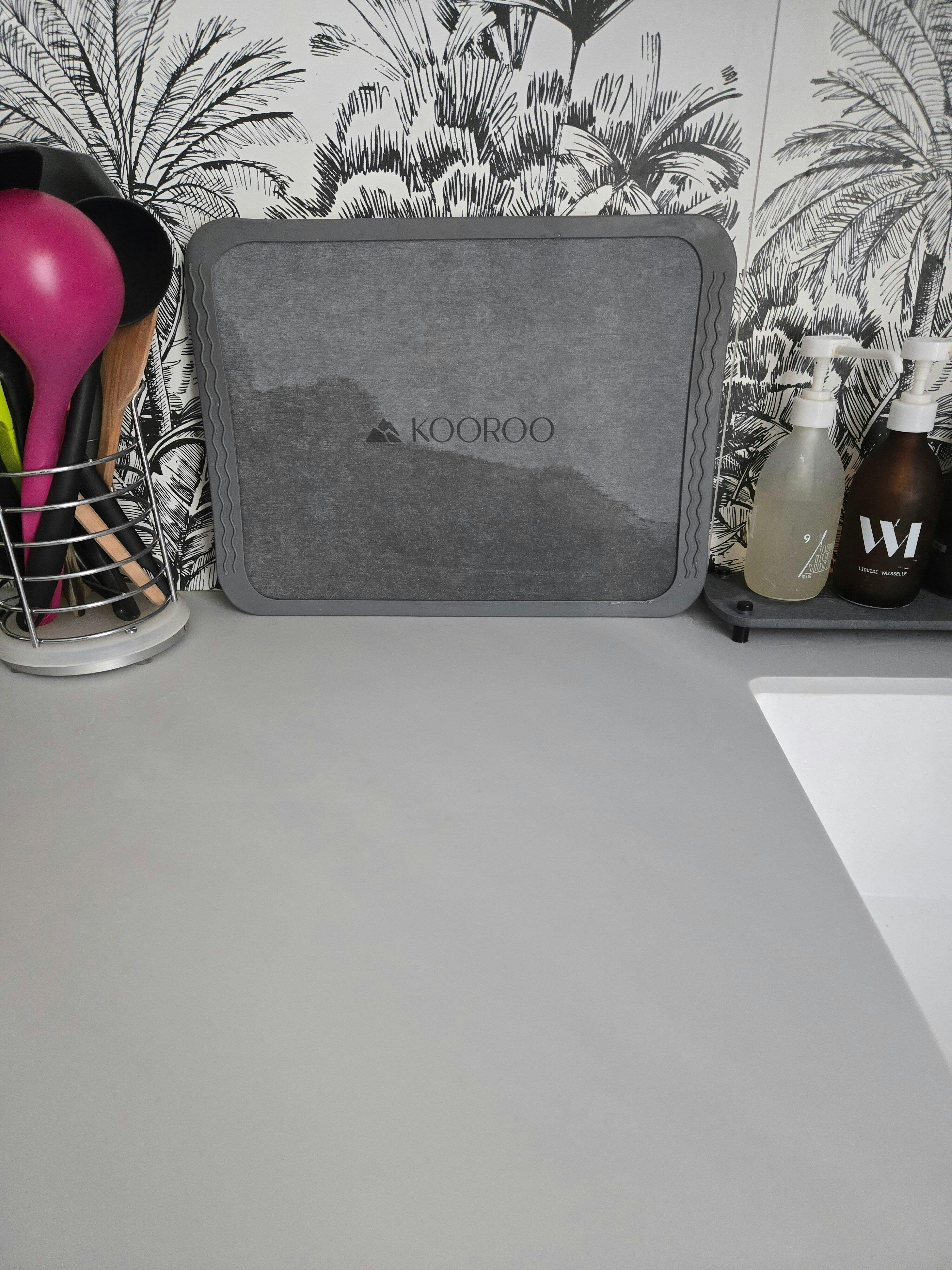 Notre égouttoir en pierre de diatomite est confectionné à base de diatomite, une pierre aux propriétés uniques. Ses qualités naturelles font de lui l'accessoire idéal dans votre cuisine pour sécher vos ustensiles ou égoutter vos fruits. Son revêtement en silicone aéré permet de faciliter l'évacuation et l'absorption de l'eau. Fini les torchons et autres linges humides qui ne sèchent pas ! L'égouttoir Kooroo est :