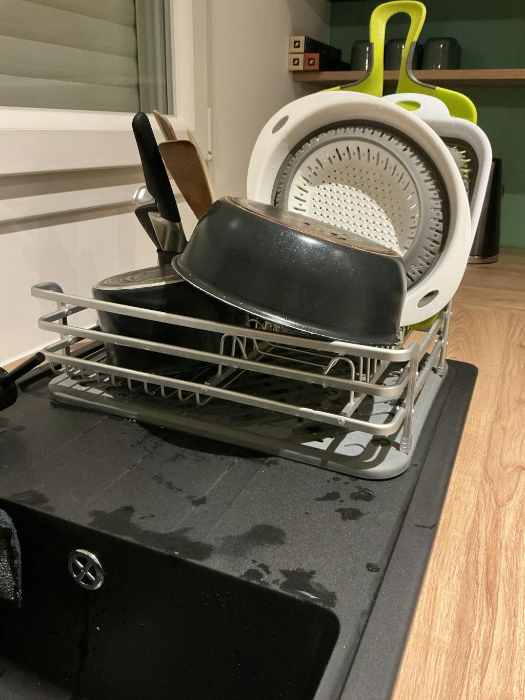 La pierre de diatomite permet un séchage quasi instantané éliminant l’excès d’eau et réduisant les traces sur vos assiettes, verres et couverts. Le panier à vaisselle en aluminium, léger et durable, complète parfaitement l’ensemble pour un rangement pratique et ordonné.