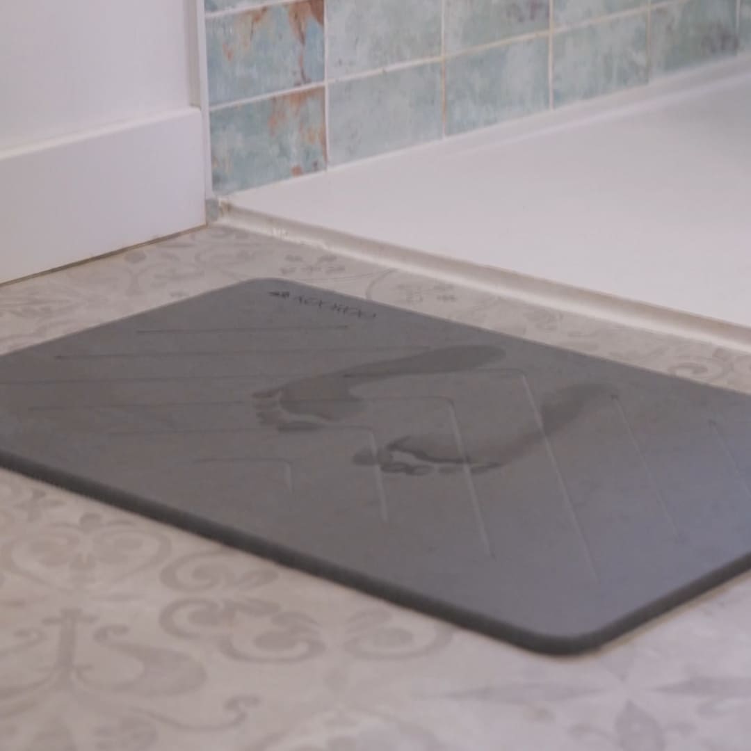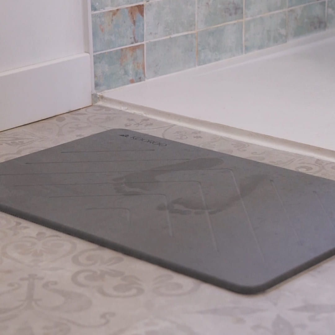 Notre tapis de bain en pierre de diatomite sèche quasi instantanément sous vos pieds ! Fini les tapis de bains humides, qui sentent mauvais et regorgent de bactéries.